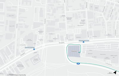 Der Westparkplatz bzw. Außenparkplatz kann über die Borsigallee aus westlicher Richtung erreicht werden. Nehmen Sie von der A66 kommend die Ausfahrt Bergen-Enkheim und fahren Sie direkt rechts ab auf die Borsigallee Richtung Hessen-Center/Bad-Vilbel. Biegen Sie danach direkt rechts ab auf den beschilderten Außenparkplatz des Hessen-Center.
